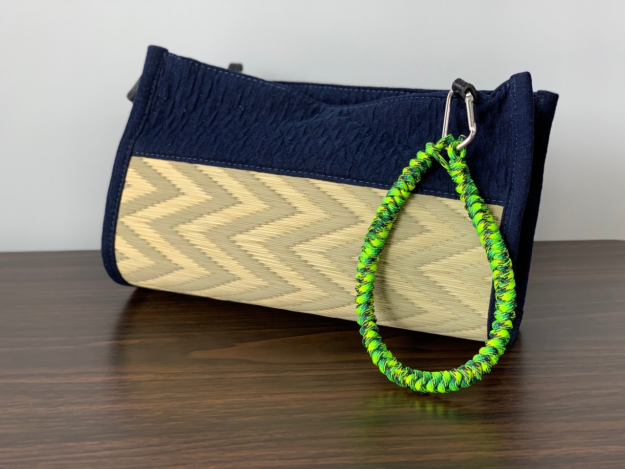 持ち手になる部分に天然い草の畳表を使用したクラッチバッグです。